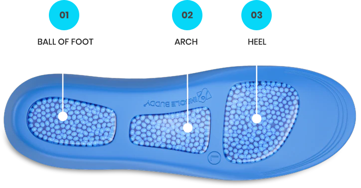 - "I can’t believe the difference InsoleBuddy has made! The air encapsulated micro bead technology provides targeted pain relief that truly works. My feet feel supported and comfortable all day long. Highly recommend!"